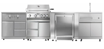 מטבח חוץ מודולרי 4 מבערים + כירת צד ויח' כיור GRLLR