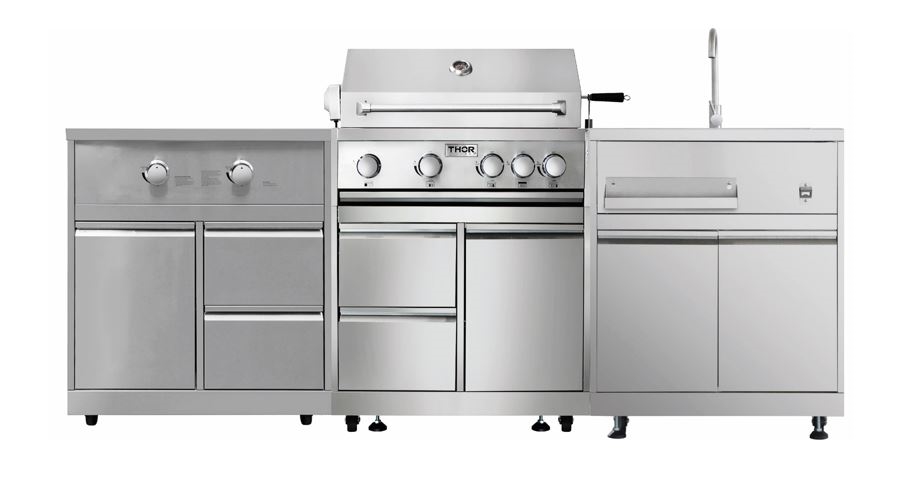 מטבח חוץ 4 מבערים כולל יחידת כיור וברז + יח' כירה כפולה THOR