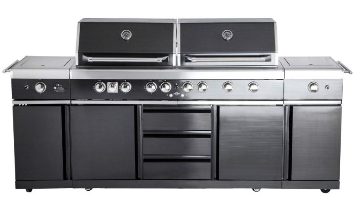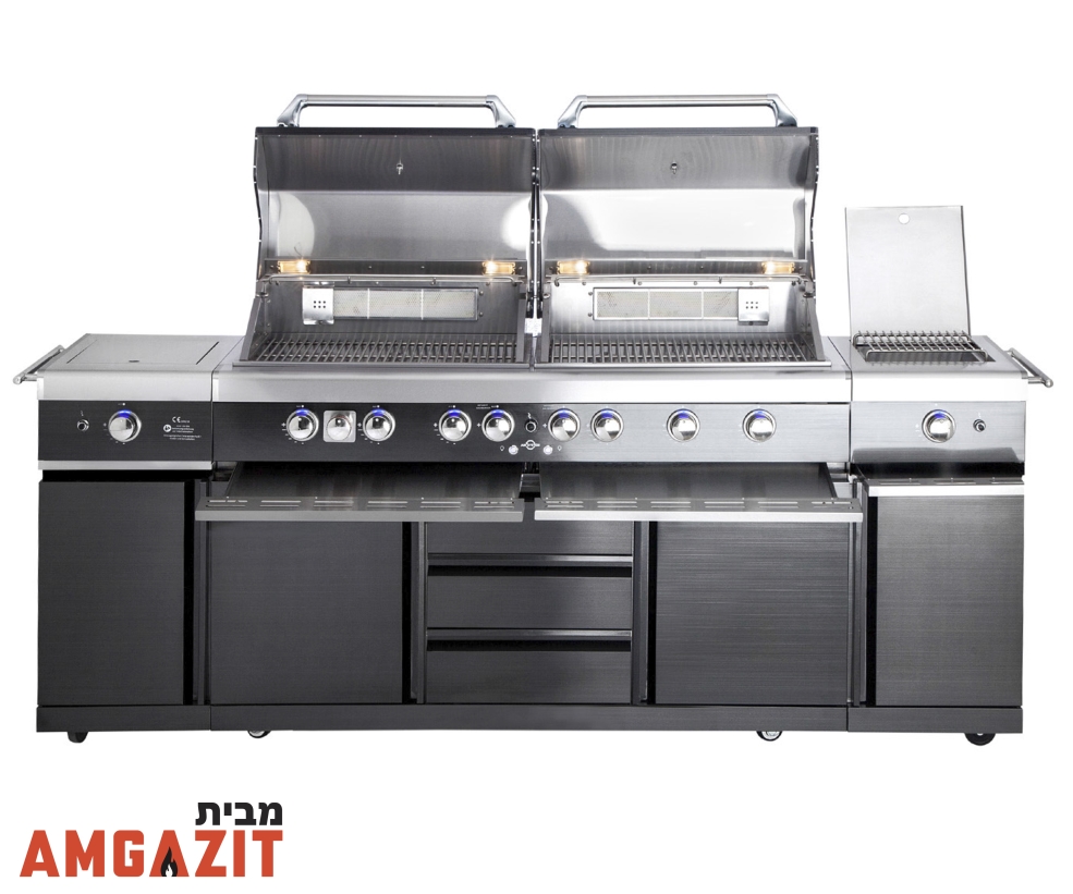 מטבח חוץ 6 מבערים + כירה צד כפולה ALL GRILL air system נירוסטה שחורה - מפואר