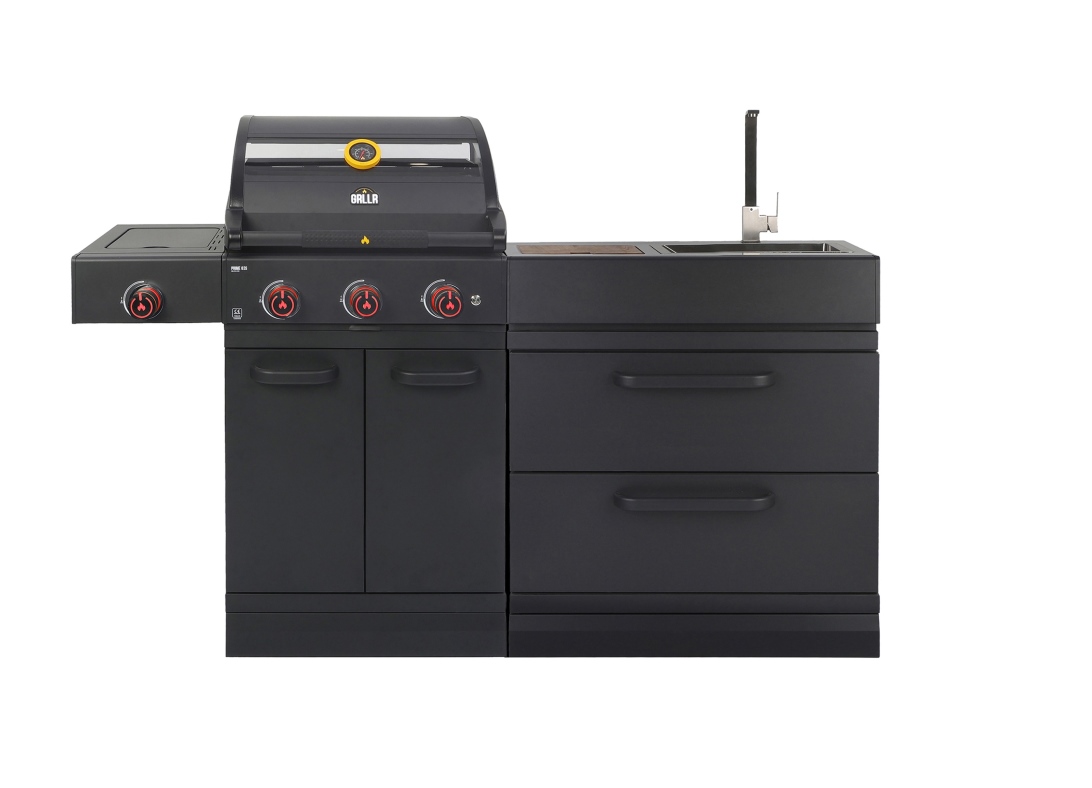 מטבח חוץ מודולרי 3 מבערים  GRLLR PRIME + כירת צד ויחידת כיור מבית המותג GRLLR  .