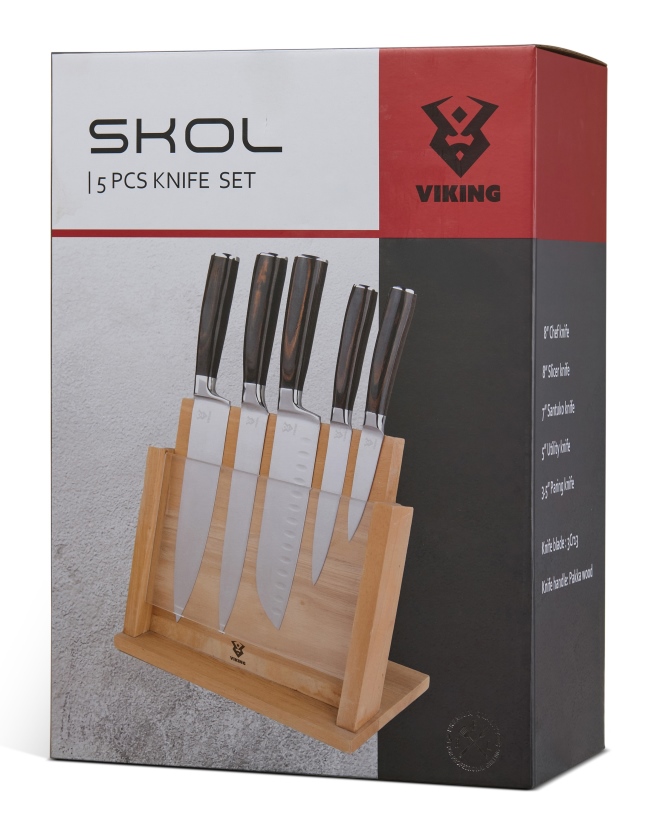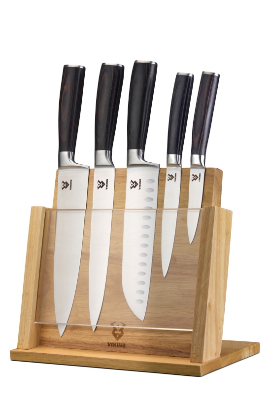 סט 5 סכינים הכולל מעמד עץ להנחת הסכינים